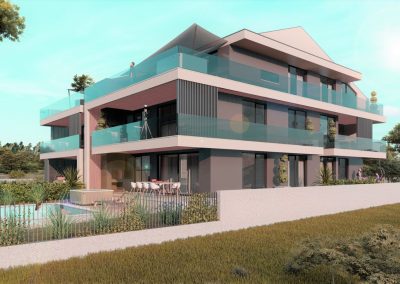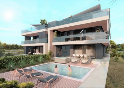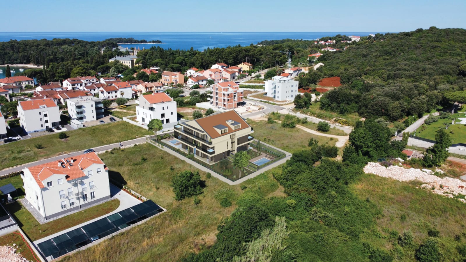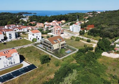 This 6-apartment residential building is designed to ensure a high level quality achieved by a smart room layout, lighting, number of rooms and a high level of installed materials and equipment. Thoughtfully designed and meticulously planned-your new home. A luxurious experience that appeals to the senses, the interiors at Rovinj Sunset Residence are as spectacular as the views that surround them, with the residences overlooking the glistening waters of the Rovinj City. The building is located at a distance of about 200 m from the sea. It consists of four floors that make up the basement (garage + storage), ground floor, 1st floor and attic, connected by a staircase and elevator.